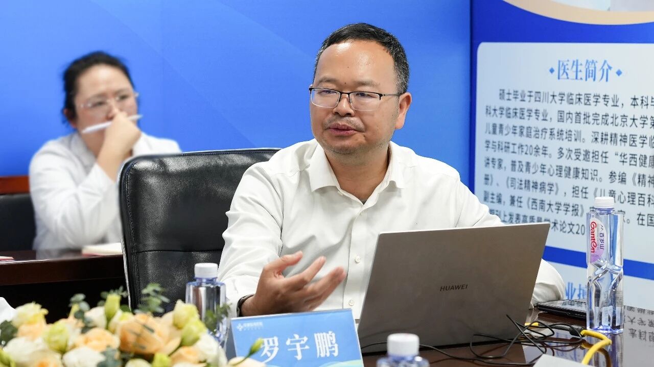 会议特邀四川大学华西医院一级专家、川渝司法鉴定专家库成员、四川省预防医学会委员、四川西南司法鉴定中心副主任医师——罗宇鹏教授莅临授课,会议聚焦青少年心理健康的多元干预与系统支持核心议题,展开了一场高水准、深融合的学术对话。 会议由成都棕南医院心身科主任陈述主持,科室全体成员积极参与,现场学术氛围浓厚、思想碰撞激烈,形成诸多建设性共识。