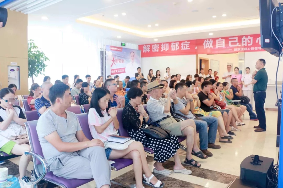 会议途中,听讲座的人还在络绎不绝的前来,现场场面盛大,座无虚席;讲座中陈博士以现场真实案例,现场解说,大家都听得兴致勃勃、意犹未尽。时长1个半小时,大家都以饱满的热情参与此次讲座。讲座最后,患者以及家属用掌声诚挚的感谢陈博士的分享,大家都认为陈博士此次“抑郁症”的讲座给自己带来了巨大收获,结束后大家都把陈博士团团围住并请教了一些关于“调节抑郁情绪”的相关心理疗法。